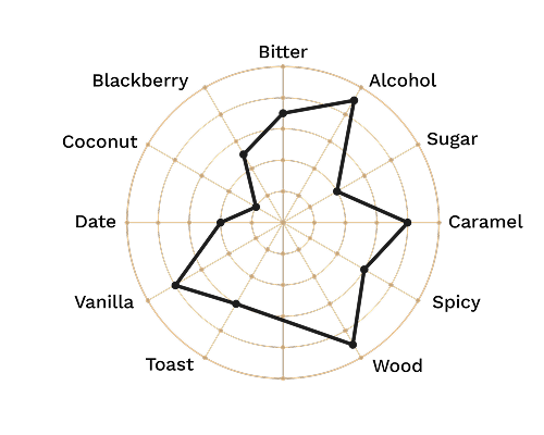 On the nose, notes of vanilla, marzipan and wood are equally predominant. On the palate, the woodiness cloaks the bread crust, roasting, rum aromas and empyreumatical notes